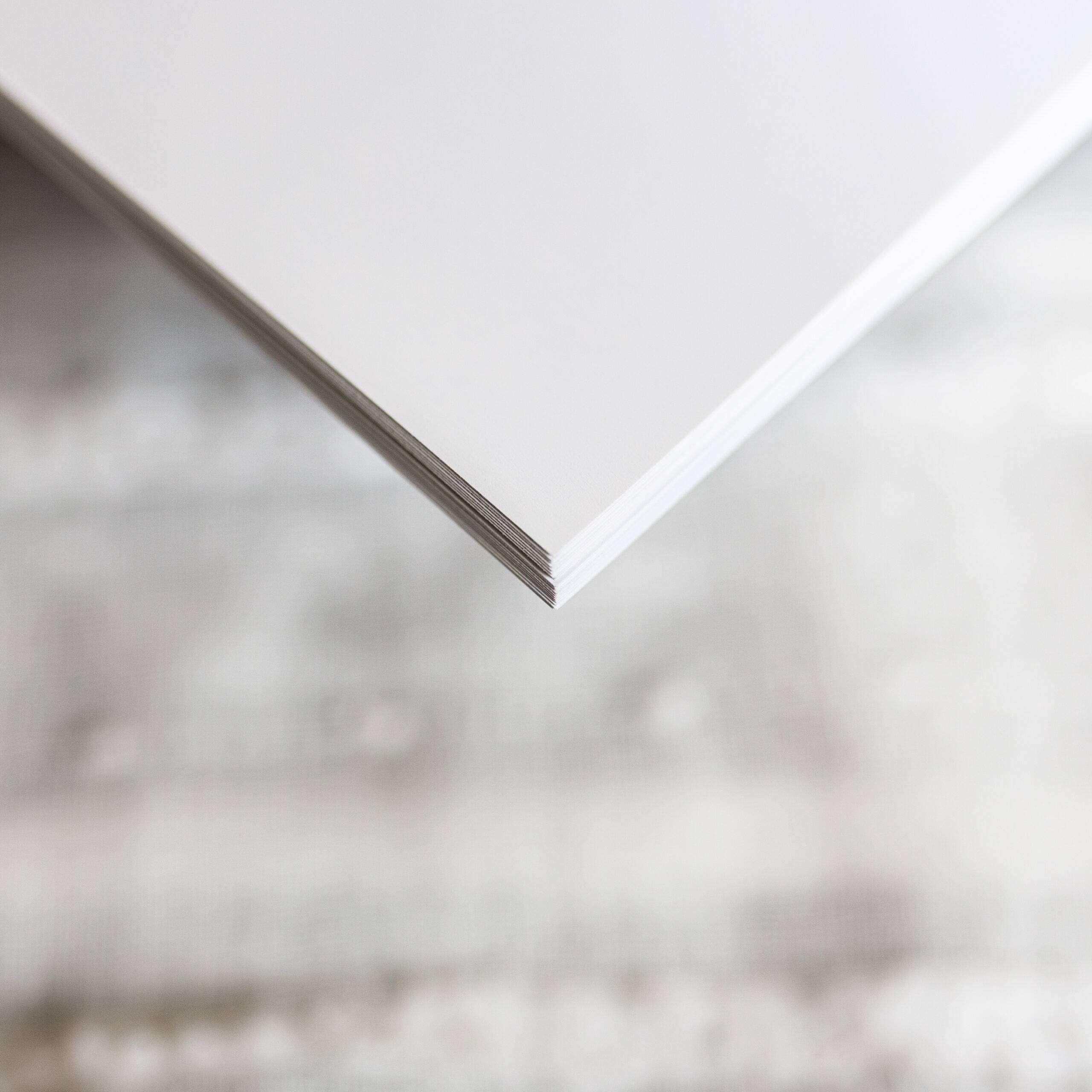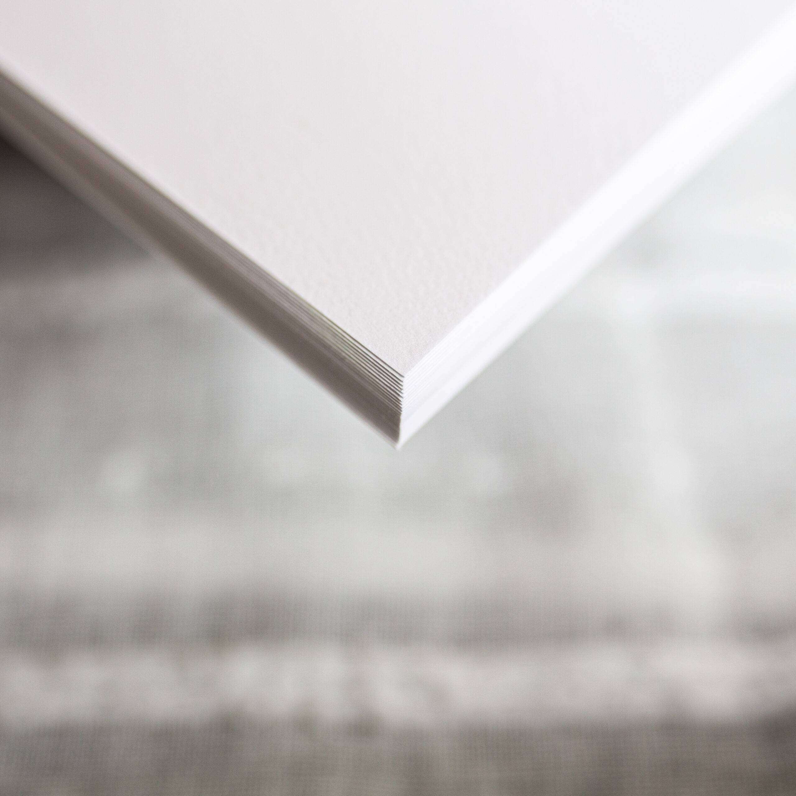 A thick brilliant white card with a delightful grainy finish, easy to write on.