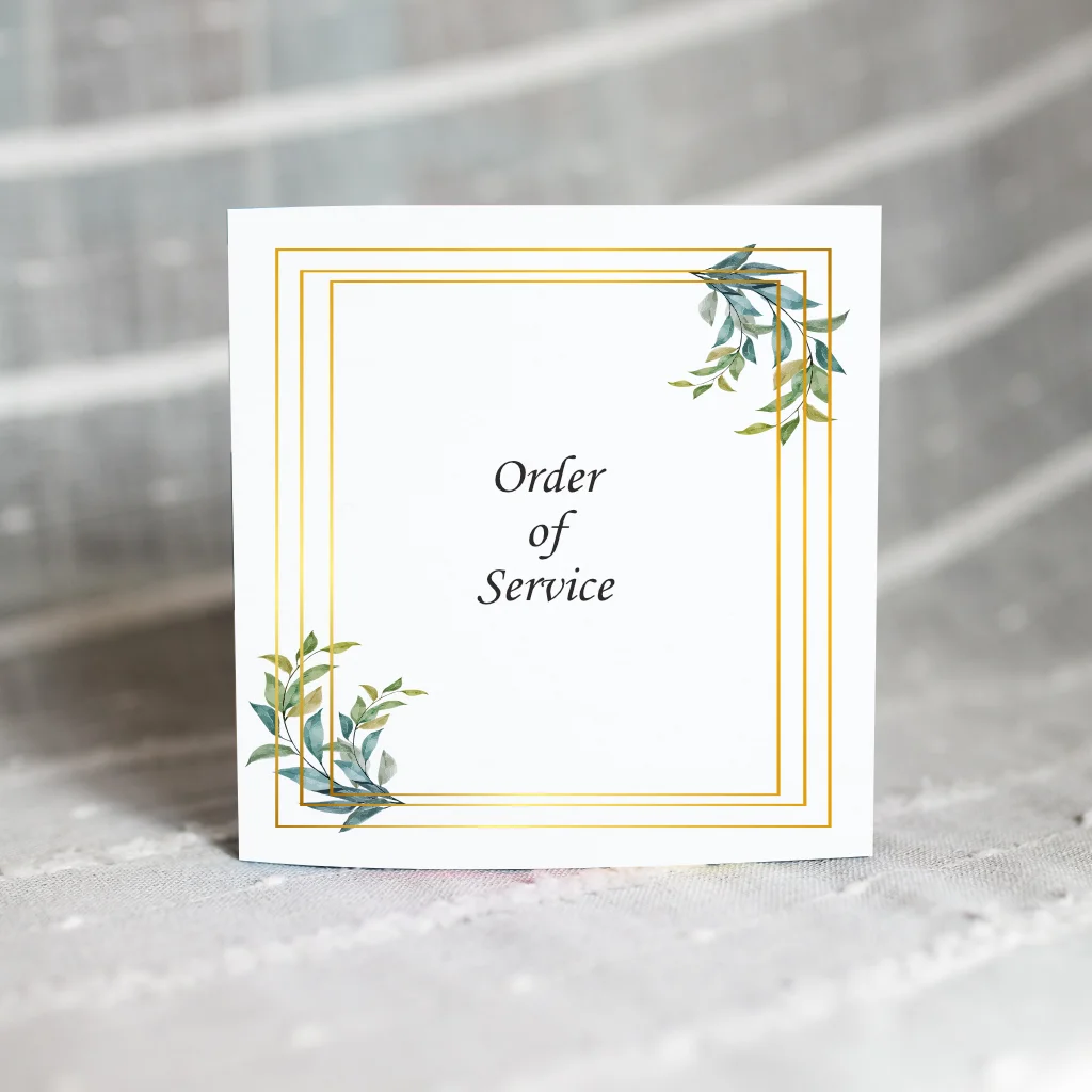 Order of Service are an essential part of a wedding or funeral, providing a lasting way to commemorate a special event. Whether you’re looking for something simple or something bespoke, our Square Order of Service are sure to make your event extra special.
